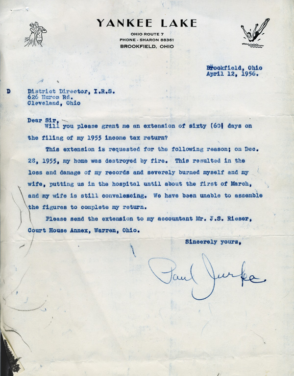 Letter to the IRS asking for an Extension on 1956 Tax Filing