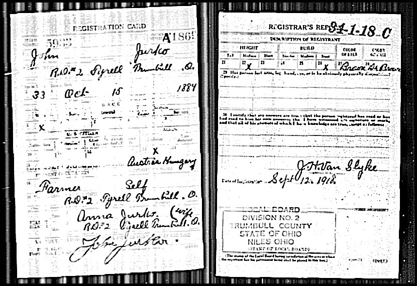 Yankee Lake Founder John Jurko's WWI Draft Registration Card
